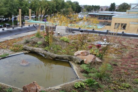 ‘De resultaten van het observatie-onderzoek zullen we op den duur ook gebruiken. We publiceren over de ontwikkelingen, of zullen er misschien een keer een tentoonstelling omheen bouwen. Je kunt de daken vanaf een paar plaatsen bekijken als we rondleidingen geven. De planten groeien steeds verder uit, en er komen steeds meer planten- en diersoorten bij. Iedereen is welkom om het te komen bewonderen. Ook bedrijven die interesse hebben in een groen dak mogen langs komen. Ze zijn zeker van harte welkom.’
