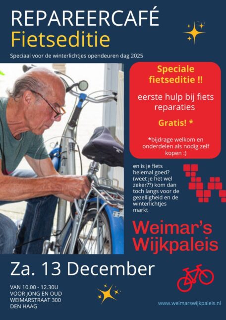 Op 13 december van 10 tot 12.30 uur staan de handige klussers en reparateurs  klaar in het Wijkpaleis (Weimarstraat 300).