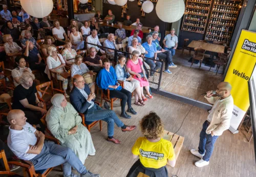 Tijdens de borrel is er een energiemarkt. Hier zijn verschillende adviseurs en coaches aanwezig om jou te helpen fijner te wonen. En geld te besparen op je energierekening.