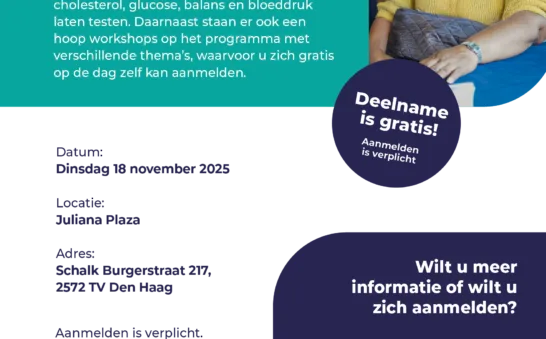Vitaliteitsdagen: speciaal voor senioren en mantelzorgers die gezond en vitaal willen blijven. Tijdens deze dagen kun je ontdekken hoe je jouw welzijn kunt versterken, met handige gezondheidschecks en tips.