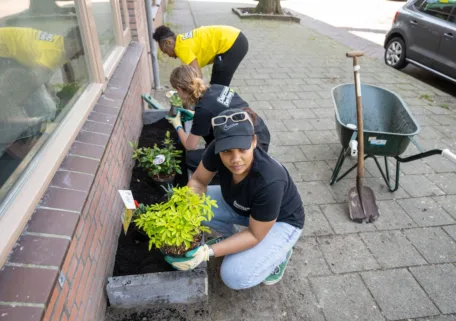 Wethouder Arjen Kapteijns noemde de oase in zijn toespraak bij de viering “sociaal cement in de stad”. Want op dit stuk grond groeien niet alleen planten, maar ook vriendschappen en meer. In de Stadsoase komt biodiversiteit, circulariteit, klimaatadaptatie, voedsel en de buurt samen. Een prachtig groen voorbeeld dat goed doet volgen. Drie blokken verderop wordt door bewoners en de gemeente een parkeerplaats omgetoverd tot de Jacob Cats Oase. Staedion heeft voor de Spinozahof het contract met de bewoners opnieuw met 5 jaar verlengd, en kijkt ook of ze op andere plekken in de stad ruimte kunnen geven aan zulke mooie bewonersinitiatieven. Alle reden voor een feest!