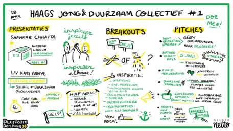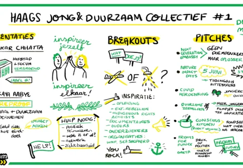 Tijdens de netwerkbijeenkomst van 29 april kwamen initiatiefnemers en jongeren samen om te spreken en te brainstormen over duurzaamheid en wat we kunnen doen in Den Haag. Inspirerend om zulke positieve en gemotiveerde jongeren te spreken! Er zijn in de stad al mooie initiatieven waar je je bij aan kan sluiten als je duurzaam aan de slag wilt. Ook start Duurzaam Den Haag de jongerenbeweging Haags jong & duurzaam collectief.