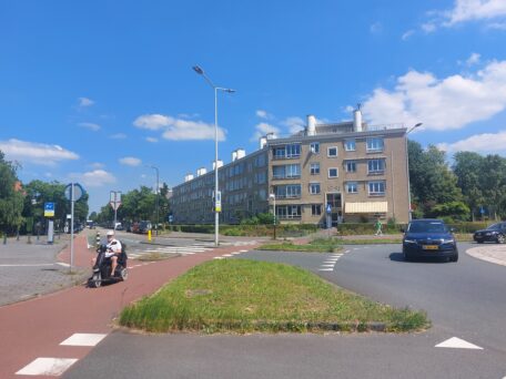 De laatste stop is de Sportlaan. Een stukje Vogelwijk met veel potentieel voor het verminderen van CO2-uitstoot, volgens Rutger. Hij legt uit: “De Sportlaan heeft zo’n 2 kilometer aan gestapelde wooncomplexen. Honderden appartementen. Een aantal daarvan hebben blokverwarming, de rest hebben eigen ketels. Daar ligt een enorm potentieel voor warmtenetten op geothermie of aquathermie van het verversingskanaal.