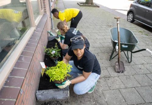 Vanuit Operatie Steenbreek helpen wij je graag om jouw eigen tuin, straat of buurt te vergroenen. Als je bijvoorbeeld een geveltuin aanlegt of tegels uit jouw achtertuin haalt, krijg je van ons gratis biologische en inheemse planten. We kunnen ook zorgen voor een container om de tegels in af te voeren. Dat is handig als alle buren samen een actie organiseren. Ook als je een andere mooie plek kent, bijvoorbeeld bij een school of buurthuis, kun je daar contact over opnemen.