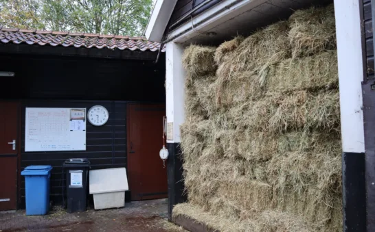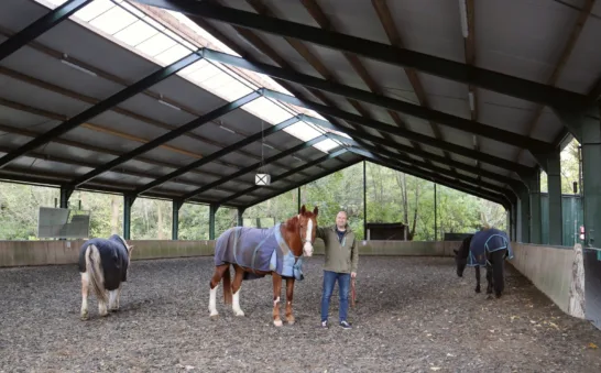 'Dat is niet het enige. We hebben bewust het stalen frame van het dak laten staan. Dat is gerepareerd, schoongemaakt en in de coating gezet en is nu weer als nieuw. En de tl-verlichting is vervangen door ledverlichting. Ook hebben we nu een sproeisysteem dat gelinkt is met de sloot. Daarmee kunnen we de bak sproeien met slootwater. Dat is nodig in de zomer, want anders lopen de paarden in het stof en dat is slecht voor de longen.’