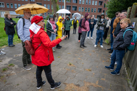 De wandeling begon bij het Trefpunt Laakhage. Dit buurthuis is volledig verduurzaamd, met een warmteplafond, warmtepomp en zonnepanelen. Het is nu een voorbeeld voor andere buurthuizen in Den Haag. Ook hoorden we hoe de Energiecoöperatie Molenwijk heeft gezorgd voor de plaatsing van zonnepanelen op het dak van het buurthuis en de sporthal Lipa. Bewoners zonder eigen dak kunnen via dit project toch investeren in schone energie én genieten van de opbrengsten.