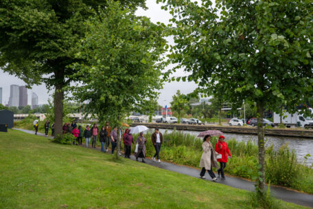 Afgelopen vrijdag wandelden we met een groep buurtbewoners, nieuwsgierigen van buiten Den Haag, raadsleden en wethouder Robert Barker door Molenwijk. We werden door Tahira van buurtteam Energierijk Molenwijk/Puntpark meegenomen langs de groene projecten. We eindigden op het Cromvlietpark, waar de nieuwe Urban Waterbuffer werd geopend door de wethouder.