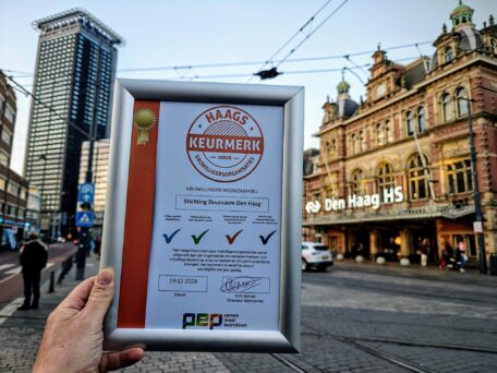 Duurzaam Den Haag heeft het Haags Keurmerk voor Vrijwilligersorganisaties ontvangen. Het keurmerk werd vorige week, tijdens een bijeenkomst van energiecoaches, overhandigd. Gert-Jan Aleman, directeur van PEP, reikte het keurmerk uit. PEP is een Haagse organisatie die maatschappelijke organisaties en buurtinitiatieven helpt.