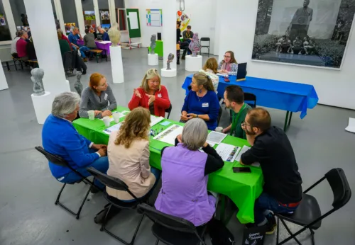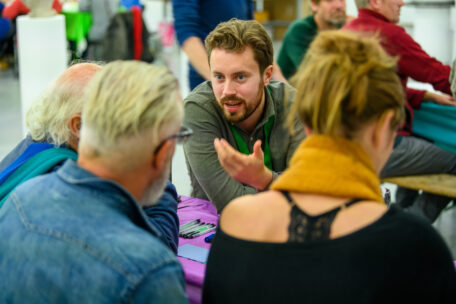 Tijdens twee rondes van een halfuur kon men aanschuiven bij een tafel met één van de vier thema’s: VvE’s, besparen en isoleren, communicatie en co-creatie of groen. Door ongeveer zes personen per tafel plaats te laten nemen was er voor iedereen tijd om zijn mening te delen of vragen te stellen. Zo ontstonden er interessante gesprekken waarbij beginners en de meer ervaren verduurzamers hun ideeën deelden en konden leren van elkaar. Ook aanwezig was Loek, een buurtbewoner: 'Ik kom om geïnformeerd te worden over wat er speelt en ik ben benieuwd wat de mogelijkheden zijn in de toekomst. Misschien kan ik ook wat bijdragen of vaker naar dit soort bijeenkomsten.'.