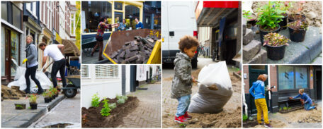 Tijdens de Dag van de Duurzaamheid zorgde Duurzaam Den Haag voor de gratis planten (via Manos Verdes) en wat mankracht, de Bewonersvereniging Rondom het Plein heeft gezorgd voor het mobiliseren van de bewoners en ondernemers die uiteindelijk de geveltuintjes aan hebben gelegd.