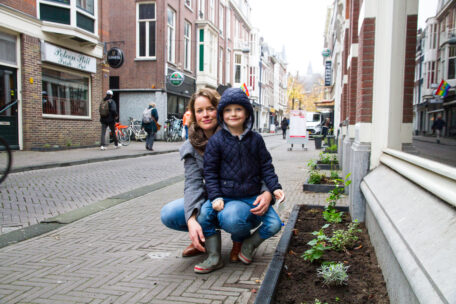 Pauline: "We hadden met de bewonersvereniging al een groenplan opgesteld, en de wens om geveltuintjes aan te leggen was er allang. Dit kwam op het juiste moment op ons pad. We hebben mailings eruit gestuurd en zijn huis-aan-huis gegaan, langs bewoners en ondernemers, om mensen te mobiliseren om mee te doen. Er wonen 2100 mensen in dit gebied in het centrum, daarvan zijn er nu zo'n 60 lid van de Bewonersvereniging rondom het Plein. Ons streven is natuurlijk om iedereen bij de vereniging te betrekken, zodat we het centrum nog groener en mooier kunnen maken!"