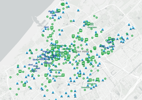 Hierboven zie je de kaart met deelauto’s van Greenwheels, Mywheels, Snappcar, OnzeAuto en DEEL. Best een flinke verzameling, toch?