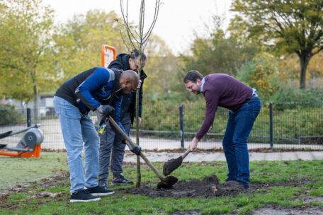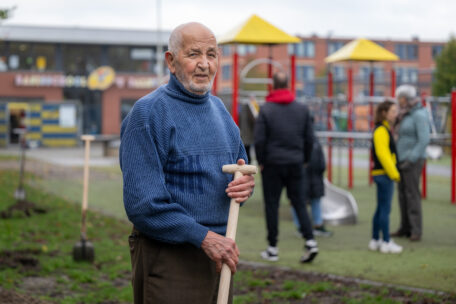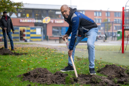 “Groen is de zuurstof voor onze kinderen. Zonder bomen geen leven”, zegt Ahmed Belrabi, terwijl hij een schop in de grond steekt. In de gaten van 60 centimeter diep komen de nieuwe bomen. Ahmed beheert de moestuin aan de Van Ostadestraat. “Ik ben heel blij met meer groen. Dat is goed voor iedereen.”
