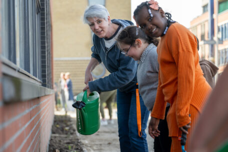 Ook veel scholen doen dit jaar mee met de actie. Op basisschool ‘t Palet in de Schilderwijk vervingen leerlingen 140 tegels voor een heg van 28 meter en haalden 150 tegels weg voor een geveltuin. Een wens van de leerlingenraad. “Bomen en planten geven de buurt meer kleur en dat vinden we fijn om naar te kijken”, zeiden de kinderen.