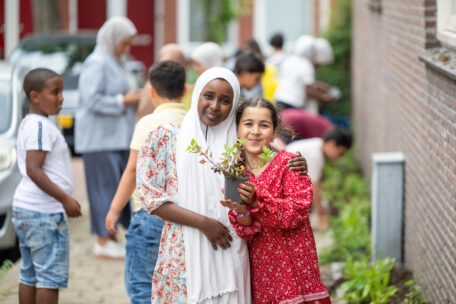 Supertrots op de geveltuin van 22 meter waren de leerlingen van basisschool Yunus Emre in de Schilderswijk. “Na uitleg waarom meer groen belangrijk is, gaven de kinderen de plantjes een mooie plek en extra water. Ze leren dat ze verantwoordelijk zijn voor het groen en dat je er goed voor moet zorgen", vertelt Edwin.