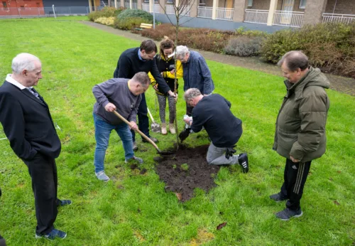 De eerste bomen zijn geplant in de binnentuin van Woonzorgcentrum HWW Zorg in Moerwijk.