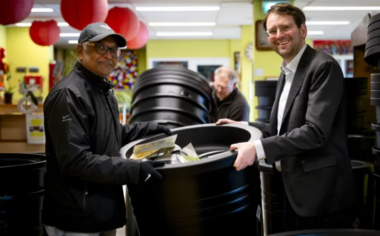 Maar liefst 524 bewoners hebben de afgelopen weken een regenton opgehaald. Samen vangen zij met hun regenton minimaal 81.220 liter regenwater op. Dankzij steun van de gemeente konden bewoners een grote regenton aanvragen. Hier werd enthousiast gebruik van gemaakt. Duurzaam Den Haag organiseerde de actie. Wethouder Robert Barker (Buitenruimte, Groen) hielp zaterdag 14 februari een handje bij uitdeelpunt het Vadercentrum in Laak.