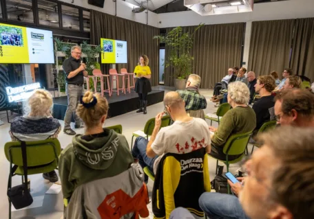 De avond begon met een presentatie van vervoerscoach Maurits. Hij was één van de eerste Hagenaars die serieus aan de slag ging met autodelen. In zijn Heesterbuurt startte hij een eigen deelgroep. In zijn presentatie vertelde hij dat een auto minder vrijheid geeft dan veel mensen denken. “We zijn opgegroeid met het idee dat een eigen auto vrijheid en status betekent,” vertelde hij. “Maar in werkelijkheid zit je vaak vast. Aan kosten, aan parkeerdruk en aan files. Bij het delen van een auto ervaar je pas echte vrijheid.”