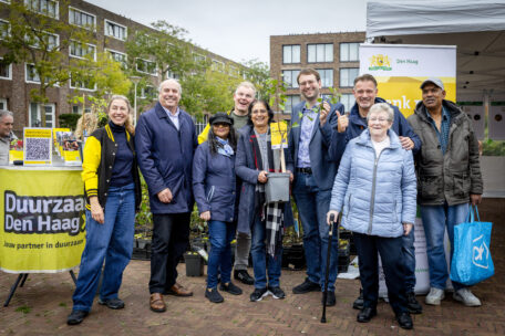 Meer bomen en planten, een “selfie-plek” voor jongeren en andere ideeën voor een bloeiend plein. Het Stellenboschplein stond afgelopen zaterdag in het teken van groene energie. Bewoners konden aangeven wat hun wensen voor het plein zijn. Wethouder Barker (Groen, Buitenruimte) overhandigde symbolisch een fruitboompje aan een van de wijkbewoners met als boodschap: iedereen kan bijdragen aan een groener Den Haag. Duurzaam Den Haag organiseerde de bewonersparticipatie.