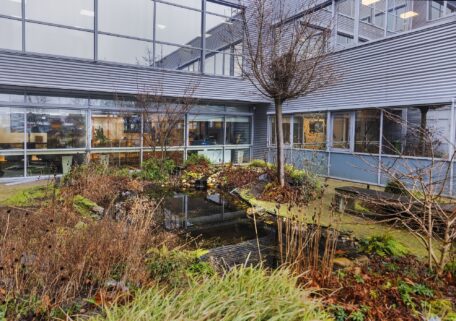 Dat vergroenen loont, weten ze ook bij het hoofdkantoor van KONE in Den Haag. Een paar jaar geleden is daar al een hele mooie binnentuin aangelegd. In plaats van de grinttegels kwamen groene bosjes en een vijver. De binnentuin is in eerste instantie aangelegd voor de medewerkers om hun werkplek aangenamer te maken. Maar er is ook gedacht aan biodiversiteit. Zo is er gekozen voor inheemse planten en werd er een bijenhotel geplaatst.