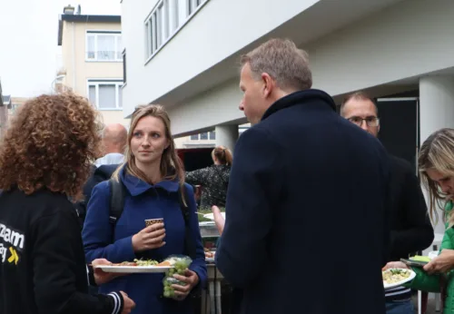Wethouder Liesbeth van Tongeren feliciteerde ons met de verhuizing. ‘Ik vind het briljant dat Duurzaam Den Haag nu op een plek zit waar duurzaamheid het hardste nodig is. In wijken waar mensen het moeilijk hebben om hun energielasten te betalen en meestal niet comfortabel wonen. Daar kan je de meeste verandering brengen.‘