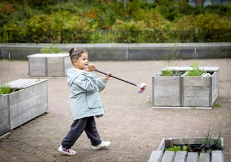 Er staan nu tijdelijke plantenbakken en boombakken op het plein. Samen met buurtkwekers, bewoners en partners hebben we deze beplant en hebben we mooie gesprekken gevoerd. De plantenbakken blijven een jaar staan om te laten zien hoe het plein eruit kán zien.